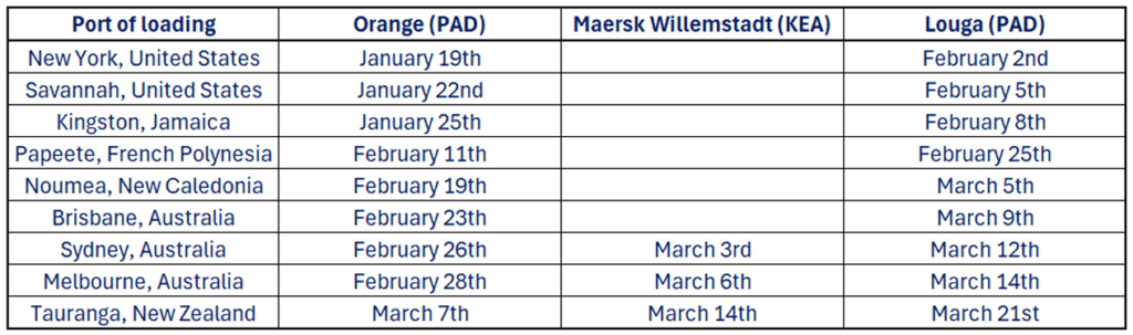 Weekly departures from Sydney / Melbourne and Tauranga will be maintained thanks to the new service KEA we put in place as from early February.